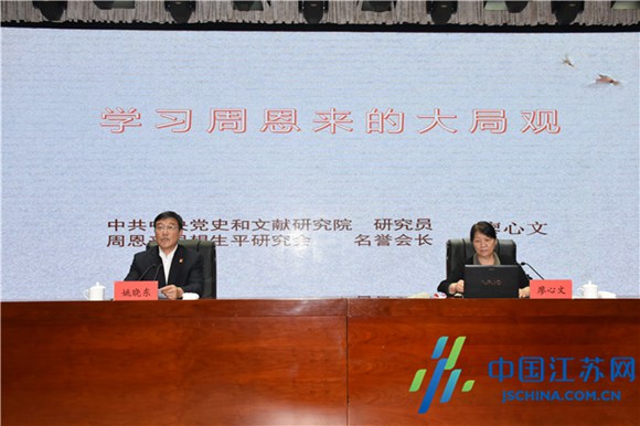 10月16日,中共中央黨史和文獻研究院研究員、中國中共文獻研究會周恩來思想生平研究分會名譽會長廖心文在恩來干部學院作學術報告——《學習周恩來的大局觀》;窗彩形瘯浺詵|主持報告會。