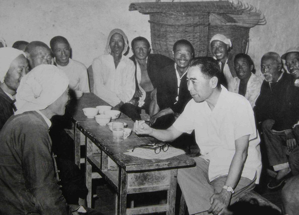 1961年5月,周恩來在河北石家莊農(nóng)村與農(nóng)民談話